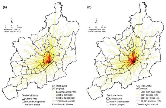Campos studied displayed flows directed to the CA of Belo Horizonte, and this percentage increased to 90% in 2012. In this sense,