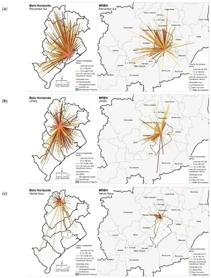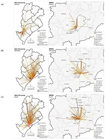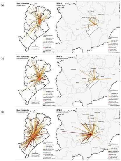 For the identification of the reorganization of the motorized flows to Belo Horizonte, considering the hypothesis of reduction of displacements to each one of these urban centralities, with the new logic of urban space structuring [