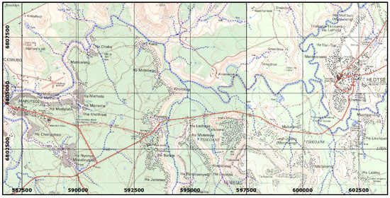 The Kingdom of Lesotho is a landlocked African state entirely surrounded by the Republic of South Africa, located between latitude 28–31° S and longitude 27–30° E (Figure 1a). It is the only country in the world entirely lying above 1000 m altitude. The area of Lesotho is 30,355 km2, mostly covered by natural vegetation (grasslands 49.6%, shrublands 19.1%, trees 1.3%) and agricultural lands (18.9%), with built-up areas accounting for 4.1% of the territory, barren lands 5.0%, water bodies and rivers 0.9%, and wetlands 1.1% [1]. According to the latest census carried out in 2016 [2], the population of Lesotho is 2,007,201 with a 0.68% annual growth rate compared to the 2006 census and an overall 107% increase compared to 1966. About 34% of the resident population lives in urban areas, with a continuous significant increase of rural-urban migration over the last decades, while about 8% lives in peri-urban areas and 58% in rural areas.