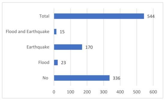 Regarding disaster experience, 31% of the participants confirmed that they had experienced earthquakes and 4% had experienced floods in Italy to ranging extents. In all, 3% of the participants stated that they experienced both disasters (
