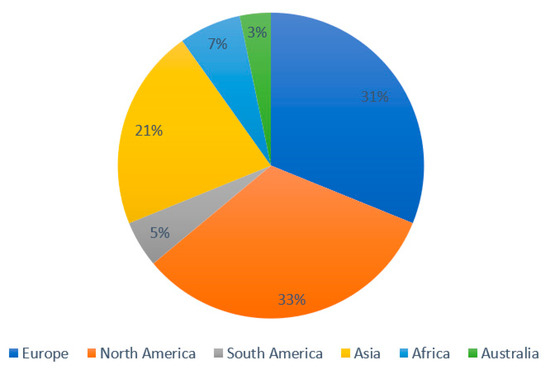 The review shows that most of the articles on sustainability in NGOs are from US and UK. Others were fairly distributed within the continents (Table 3). This is consistent with the findings of [6,82] as well as [14,75,83] who posit that studies in SR are more largely concentrated in Europe and the American continent. This prompted the authors to analyse it by continent [84,85] in order to get a clearer picture of this claim or otherwise. Further analysis (Figure 4) shows that 38% of the study are from America, 31% from Europe, 21% from Asia, and only 7% and 3% are from Africa and Australia, respectively. Besides, the continent of Africa has not received a fair share of interest in this all-important topic despite being a hot spot for NGOs as a developing continent. The underlying ideology of NGOs is to espouse equality, social justice, improved living standards, and enhanced quality of life in general. All these are common problems associated with developing or underdeveloped countries of Africa.