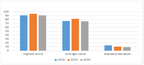 In this year, the maximum score of the students was 95, the average score was 81.85, and the standard deviation was 9.92. In addition, teachers received higher satisfaction feedback from students compared to other years (see Figure 2).