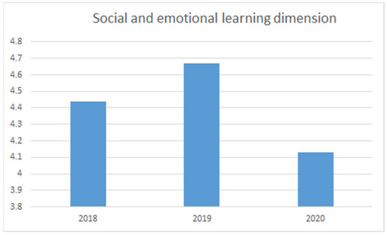 The other stated merits of this online platform include saving time, no need to dress up, taking longer breaks, and increasing opportunities for time use. At the same time, online classes can be free from negative interference from other students. Course recording is good for repetitive learning or after-school learning. Electronic media can make teaching content more clearly presented. Online learning can also make students who are introverted and afraid to speak willing to ask questions, and part of the learning pressure is reduced (for example, canceling exams and changing to reports, eliminating the need to meet students who do not want to meet). Finally, the convenience of the home environment provides favorable support for online learning. In the social and emotional learning dimension, the gap between face-to-face class and hybrid teaching has widened, and the students’ satisfaction with the hybrid teaching is the highest (see Figure 5).
