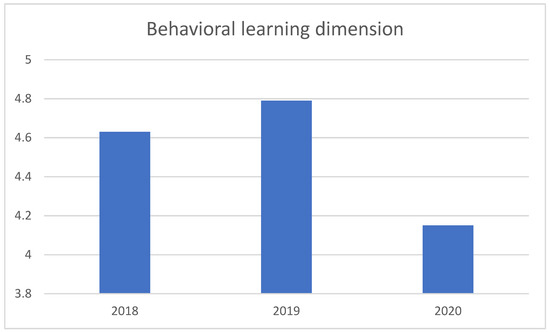 In the behavioral learning dimension, students’ opinions reinforced the quantitative data, and the gap between the online class and the hybrid class widened. Students’ satisfaction with the hybrid class was higher compared to other years (see Figure 6). However, this dimension witnessed some drawbacks in this online platform. The analysis of iLearn 2.0 online class shows the platform has some major problems: