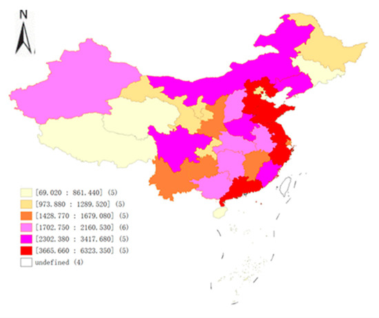 Electricity is the fastest-growing source of final energy consumption, and global electricity demand grows at 2.1% per year from 2018 to 2040, twice the rate of primary energy demand. The environmental implications of these patterns of energy use are stark, and energy-related CO2 emissions hit a record high since 2013 with a 1.9% increase in 2018 [1]. Due to the heavy dependence on fossil fuels, world electricity generation leads to massive carbon emissions, which accounts for 37.5% of total CO2 emissions [2]. China is the world’s largest CO2 emitter, with 9570.8 Mt of CO2 emissions in 2018, occupying 28.6% of world emissions [3]. China is actively pursuing a decarbonization transition, with the government committing to a carbon peak by 2030 and net-zero emissions by 2060. Figure 1 shows the regional distribution of electricity consumption based on six quantile maps in 2018. The five provinces with the highest value of electricity consumption are Hebei, Jiangsu, Zhejiang, Shandong, and Guangdong. The maximum value appeared in Guangdong province, where the corresponding electricity consumption is 632.34 billion kWh. Indeed, due to economic development, geographic environment, and consequent population distribution, the electricity consumptions of eastern provinces are higher than the central and western provinces. Specifically, the average electricity consumption in eastern, central, and western provinces is 216 billion kWh, 124.6 billion kWh, and 95.1 billion kWh, respectively (three regional division methods can be found in [4]).