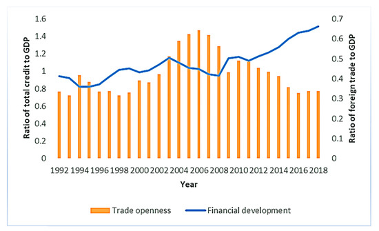 Financial development and trade openness in China, 1992–2018. Data source: the National Bureau of Statistics of China.