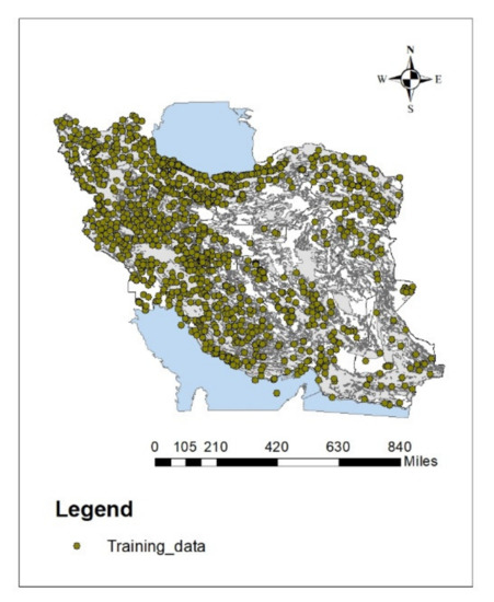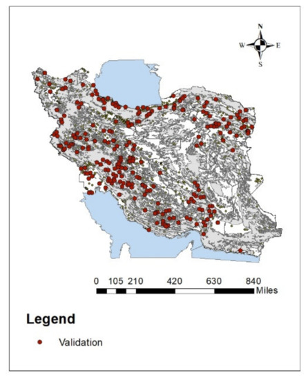 In order to train the neural network, all 1132 locations werechosen. The proposed neural network consists of three layers and 70, 100, and 50 neurons in each layer. Finally, 250 random geographical locations were selected by QGIS. Then, the trained neural network accuracy was evaluated.