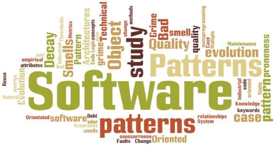 The AND/OR Boolean operators were applied with the identified keywords interchangeably in order to retrieve as many results as possible between the years 2010 and 2020. From the word cloud perspectives, the analysis of author-indexed keywords from the selected studies showed that “software design patterns”, “bad smell”, “decay”, and “grime” were amongst the most frequently used keywords (see Figure 2). Additionally, the backward and forward approach was adopted in this study to perform the manual search and to assure the integrity of the systematic search [32]. The aforementioned approach was also used to trace the additional references within the citations of the identified studies.