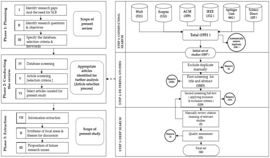 SLR phases and steps involved in the selection of studies.