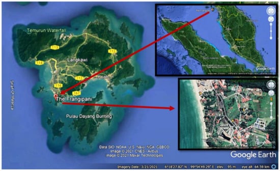 - GoogleEarth. Map of the Frangipani Langkawi Resort; Google Earth Pro: Mountain View, CA, USA, 2021. [Google Scholar]