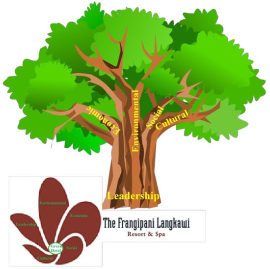 Mittal and Dhar [2], in a leadership study, reported that green transformational leadership is positively related to the promotion of green creativity in the organization when considering resource commitment. In addition, Abdou et al. [3] also reported that 63% of the total Certified Green Star hotels that have environmental representatives in the hotels in Egypt contributed positively to achieving environment-related goals, namely, SDG 6, SDG 12, SDG 7, and SDG 13. In other words, sustainability matters to the hotel’s key players as the social responsibility investments clearly resulted in the hotel’s financial values and performance in the long run whilst bringing benefits to society [4]. Besides, a development of collective leadership to form a network among the stakeholders is needed to be established to make a difference and change in tourism workplaces and destinations [5]. Therefore, green hotels have to increase their resource commitment for the promotion of green creativity amongst their employees. Frangipani Langkawi Resort and Spa is keen to continue the green hotel practices of environmental, economic, and sociocultural sustainability. However, the integration of these green practices, along with inadequate collaboration among stakeholders, remains challenging to fulfill the aspiration of sustainable development. Thus, this study explored the transformational and behavioral leadership roles of Frangipani Hotel via bringing science and technology to the local multistakeholders platform for green hotel practices to enhance sustainable development.