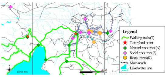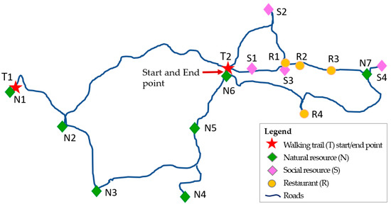 A special category of resources is walking trails, because they are both an individual resource and a set of resources. They are not restricted to one geographical point, but to a set of points mapped on a line. Although they are more related to natural environments, they may exist, in whole or in part, in rural or urban areas. The tourist preferences and satisfaction factors for walking trails are different from those for other types of resources, as shown by Bichler and Peters [44].