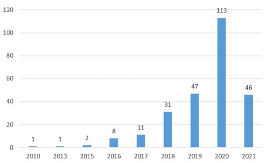 Data were collected in June 2021 from Scopus, which is developed by Elsevier. Scopus is one of the largest abstract and citation databases, covering more than 24,600 active titles (peer-reviewed journals, book, trade publications, and articles in process) and over 5000 publishers. It has been regarded as one of the most widely recognized and reliable databases [50,51,52,53]. Compared with the Web of Science databases, Scopus is known for covering more categories and articles [52,53,54]. Various studies have used the Scopus database as the main source for conducting bibliometric analysis [55,56,57,58]. Moreover, it should be noted that using a single database is recommended, as this can minimize the likelihood of potential human errors [40]. Therefore, the Scopus database was deemed to be adequate for bibliometric analysis.