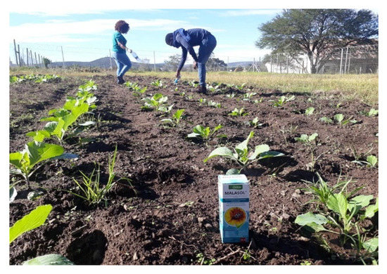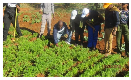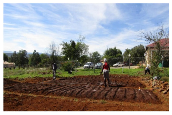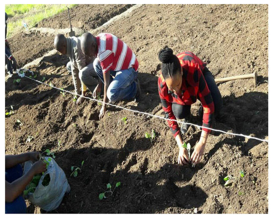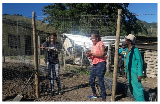 The programme was based on a participatory action research approach (PARA) as recognised in the literature [43,44]. It is an appropriate approach for collective problem identification and solving, empowerment and shared learning, and has been strongly linked with knowledge for action that directly benefits people, particularly the socially vulnerable and disadvantaged. The department initiated the pilot project with the 2018 Agricultural Extension Honours class. Students were placed into three separate groups and each group was assigned to do a general needs-based surveillance of the community to identify potential project locations within the Alice community. Three project sites were then purposively selected based on the severity of agricultural production challenges and urgency of intervention. Each group thereafter jointly conceived the project themes. The same project identification process was replicated for the 2019 Honours class; however, the coronavirus pandemic with subsequent national lockdown and social distancing regulations prevented the 2020 class from participating in the project.
