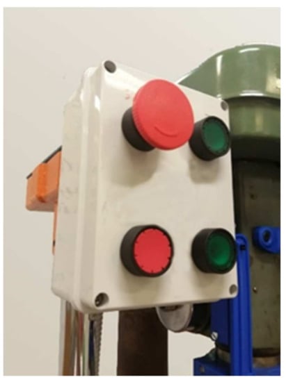 Figure 5. Control panel with emergency stop and low voltage control buttons. - Installation of a switch connected to the self-holding circuit inside the belt box (Figure 6);