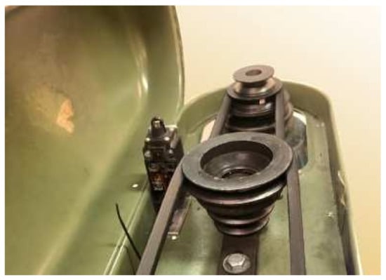 Figure 6. Belt box. - Installation of a movable protection screen (with a switch connected to the holding circuit) that prevents the risks of projections, splashes, and catching of clothing during spindle rotation (Figure 7).