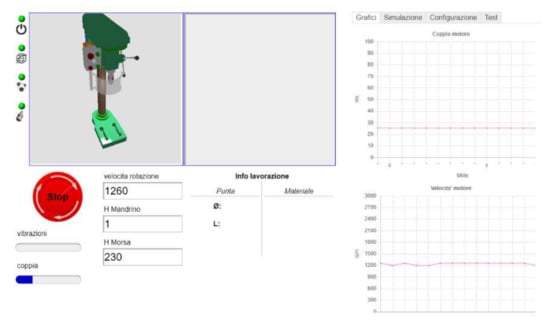 The management application is a web-based app that, in addition to monitoring the process parameters in real time, allows operators to visualize the process through a 3D model (Digital Twin), to visualize the trend over time through graphs, and to possibly record the process data and consult them for future analysis (Figure 9).