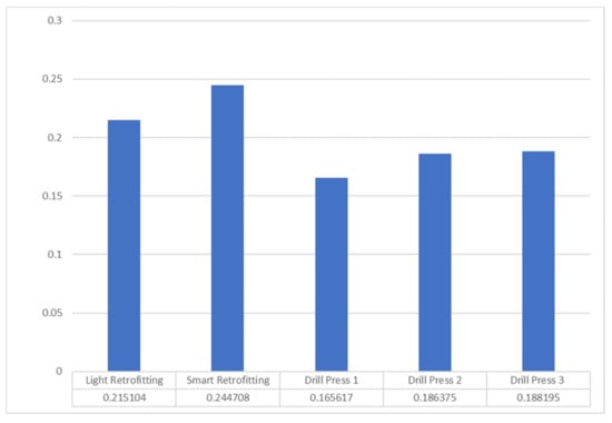 Lins and Oliveira [] and Ayani et al. [] assessed the benefits of retrofitting processes performed on a robotic arm and obsolete machines, respectively. Lins and Oliveira [] argued that retrofitting is a fast and low-cost solution which allows companies to keep up with the development of Industry 4.0 and enables improvements in terms of energy efficiency.