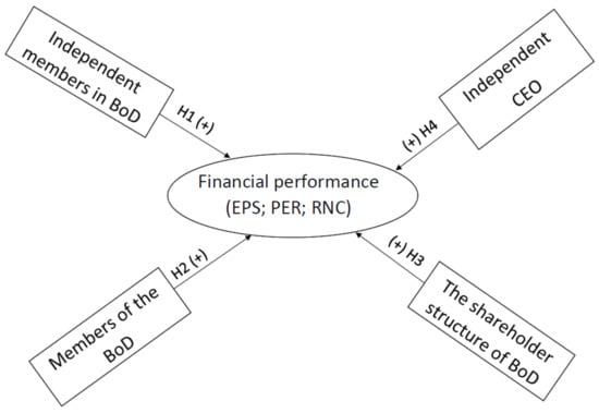 The application of principles, rules, and practices that are specific to a good corporate governance has some determinant benefits such as an increased credibility of financial and non-financial reporting to the investors, the ease of access to capital and lower financing costs, the identification and valorization of all the competitive opportunities, the implementation of an adequate management control that ensures an efficient use of resources, and the adequate control of risks that could affect the sustainable development of the entities [,,,]. For this reason, the impact of corporate governance over financial performance has been questioned in different contexts. The basis of a good corporate governance is influenced by the management behavior, which plays a part in the accomplishment or non-accomplishment of the objectives of the entity [,,]. In the given context, ensuring the quality of corporate governance imposes responsibility, correctness, transparency, and qualitative relationships among shareholders, board of directors, management, and employees [,,,]. In turn, these aspects define the authority and the responsibility of the ones that are part of the governance, by supplying sustainable value to all interested parties, as well as the basis for improving financial performance [,].