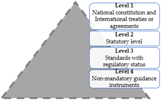Hierarchical levels according to US, German, French and Russian regulations [23,36].
