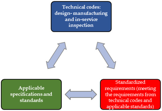 It is recommended, mainly in projects of a certain size (from the design and manufacturing up to the monitoring of components in-service operation), that at the beginning of each project the order of prevalence of the technical information to be handled is established. This action is the responsibility of the customer. If this action is not carried out, it is possible to overlook a document which should have been considered. Figure 5 provides the relationship between technical codes, applicable specifications and their standardized requirements.