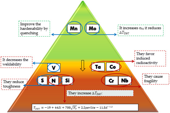- Ease of machining and weldability. A high machinability and adequate weldability are essential to correctly choose a material for the manufacture of an RPV [23]. Thus, usually the required C wt.% is lower than 0.15%.