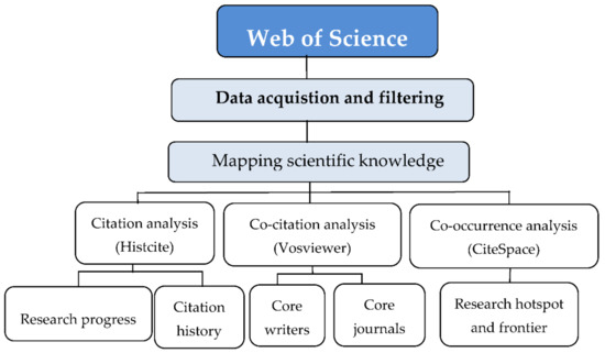 In order to gain a deeper understanding of the literature context of cluster internationalization, this study used three types of bibliometric software; namely, Citespace, Vosviewer, and Histcite. As shown in Figure 1, CiteSpace was used to search and cluster the high-frequency keywords of the data pool literature to find the frontier hot spots of the discipline. Vosviewer was used to depict the atlas of co-citation of the literature and co-citation of the authors. Histcite was used to search for the relationship between different reports on the same topic, in order quickly to locate important literature. Based on this, the paper analyzed the trend of this topic, the statistics of literature publication institutions, the statistics of literature publication journals, as well as the specific connection and evolution process of the cited literature.