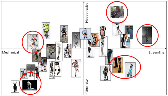 Figure 4 presents the results of image scale analysis using “Streamline and Mechanical” as the X-axis scale and “Obtrusive and Not obtrusive” as the Y-axis scale.