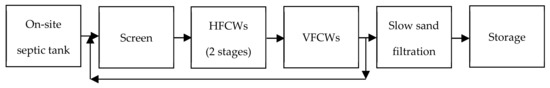 Figure 3. Treatment train proposed for clusters of guesthouses and households. Reprinted with permission from ref. [66]. Copyright 2020, Zahra Alipour Tesieh.