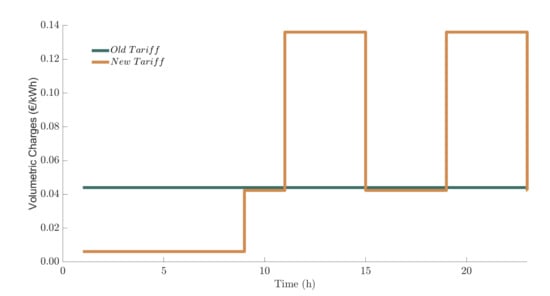 On the other hand, since June 2021 new network tariffs and levies apply to electricity consumers in Spain, including small residential and commercial consumers (less than 10 kW). The new electricity tariff aims to incentivise changes in consumption patterns to reduce consumption peaks in the hours of maximum consumption (midday and evening during weekdays) by moving it to hours with historical valley consumption. Thus, this tariff reduces the capacity charge and moves from one volumetric charge to three volumetric charges [,].