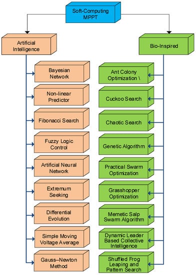 The working principle of soft computing-based MPPT is to develop a low-cost robust system to achieve tractability for uncertainty, inaccuracy and approximation in a PV system. Furthermore, the greatest vital feature of SC-MPPT is the flexibility in algorithm design, which permits the researcher to develop a robust MPPT scheme as per the system configuration and environment conditions. This is all possible because SC-MPPT are digital. In addition, because of the adaptive nature of algorithms, SC-MPPT is envisioned to be effortlessly adjustable to satisfy the intermittent environmental conditions, such as non-linearity of solar irradiance and partial shading.