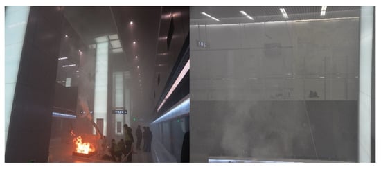 As a significant means of transportation in the modern city, the subway system has been developed rapidly due to the advantages of large transportation, high velocity, punctuality, and low energy consumption. There has been a dramatic growth in Chinese subway systems with incredible velocity and scale in the past thirty years. By the end of 2020, a total of 6300 kilometers of subway lines had been built in China. Due to the closed environment of the underground space and consistently high pedestrian flow, one of the key issues for subway security are fire accidents that could lead to overwhelming injuries and casualties [,,]. Statistics have shown that about 85% of the casualties were attributed to the toxic smoke during fire accidents rather than the flame [,]. In Baku, Azerbaijan’s capital, a large fire occurred in the subway station and there were 289 people killed and 265 people injured []. Studies on smoke control could help reduce casualties and property loss, and provide guidance for evacuation of people once fire occurs.