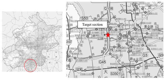 This paper takes the traffic information collected by RTMS of all national, provincial, and county roads outside of the Fifth Ring Road in Beijing as the data basis for analysis, taking the section where the detector of Jingkai auxiliary road (stake No. K11 + 110) is located as the target section, and taking a total of 49 detector sections in Daxing District where the detector is located as the alternative section (15 detectors have no data during data extraction). The specific location of the detector is shown in Figure 4.