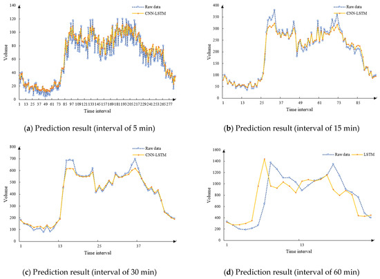 (2) In order to capture the spatial–temporal features of the travel volume of road sections, a two-layer deep learning structure is proposed, which combines the CNN and the LSTM.