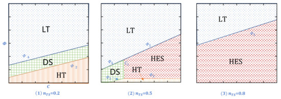 To facilitate the illustration, we define three new symbols to measure how customers utility change as the traceability level changes: Δ T S = α T S τ H α T S τ 0 , Δ T N S = α T N S τ H α T N S τ 0 are the TS/TNS customers’ utility gain when logistics traceability improves, respectively, where Δ T S Δ T N S 0 . Δ T N S T S · = α T S · α T N S · is the utility gap between TS and TNS customers under the same traceability level, where Δ T N S T S τ H = α T S τ H α T N S τ H , Δ T N S T S τ 0 = α T S τ 0 α T N S τ 0 , Δ T N S T S τ H Δ T N S T S τ 0 0 .