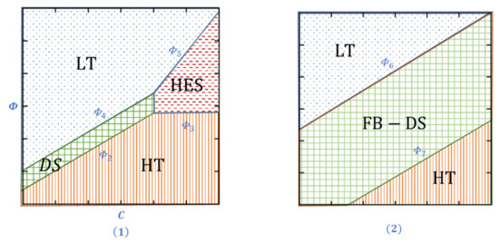 According to all the derivative processes, we derive two optimal strategy transfer paths, which are characterized by Φ and C . Threshold Φ and C are as follows: