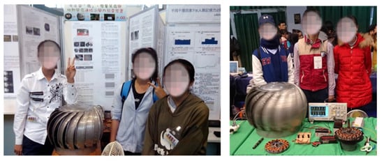 The Competition and Feedback phases were used to revise the project work after self-evaluation and peer review for the off-campus competition. The feedback from the external judges was more helpful for students’ reflection and internalization into the motivation of learning. The club teachers used energy sustainability as the curriculum content, introducing various forms of power generation (e.g., thermal, nuclear, hydroelectric, wind, solar, hydrogen fuel cell, geothermal, tidal, and ocean currents) to inspire students’ creative ideas and to encourage them to think about energy sustainability.