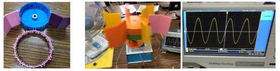 Preliminary investigations had the students applying strong magnets and rotating the ceiling fan turntable to obtain power output; because the voltage waveforms were irregular, the data of the voltage waveforms tested by the students were not accurate. Therefore, the club teacher assigned each group a project task and encouraged the students to solve the problem of messy waveforms and find the method that maximized power generation (Figure 3).