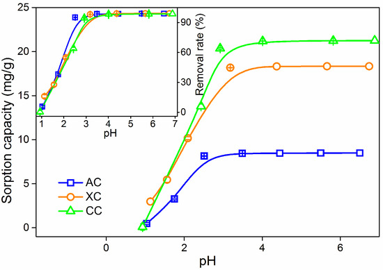 - Yang, X.; Wan, Y.; Zheng, Y.; He, F.; Yu, Z.; Huang, J.; Gao, B. Surface functional groups of carbon-based adsorbents and their roles in the removal of heavy metals from aqueous solutions: A critical review. Chem. Eng. J. 2019, 366, 608–621. [Google Scholar] [CrossRef]