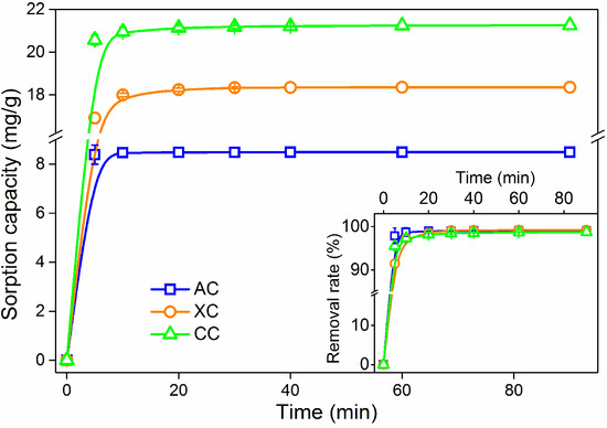 3.2.3. Effect of Sorption Time on Zn(II) Sorption