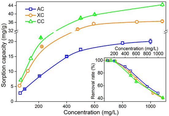 3.2.4. Effect of Initial Concentration on Zn(II) Sorption
