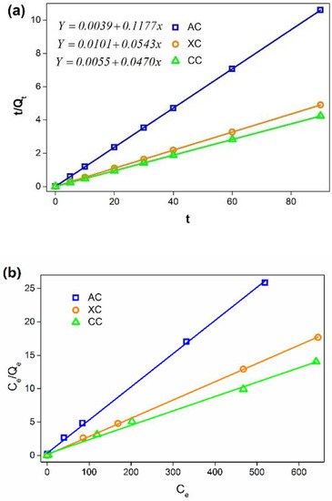 - Zhu, H.X.; Cao, X.J.; He, Y.C.; Kong, Q.P.; He, H.; Wang, J. Removal of Cu2+ from aqueous solutions by the novel modified bagasse pulp cellulose: Kinetics, isotherm and mechanism. Carbohydr. Polym. 2015, 129, 115–126. [Google Scholar] [CrossRef]