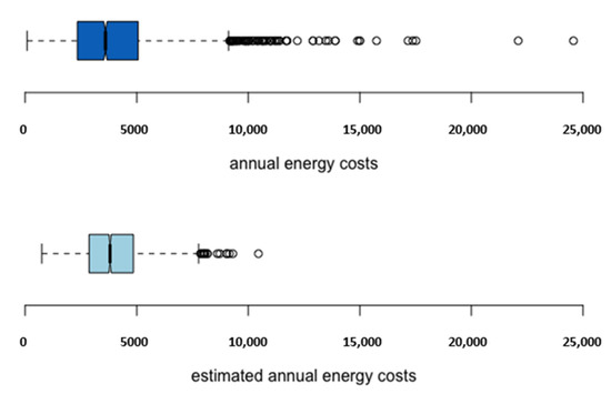 Boxplots for actual and estimated annual energy costs, 2018.