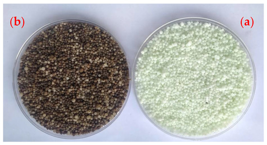 Due to their high dissolution rate, urea granules are rapidly hydrolyzed by urease enzymes into ammonium (NH4+), hydroxyl (OH−), and carbonate (CO32−) ions within two days after soil application [9]. Thereafter, the active nitrification process completely converts NH4+ to NO3− within a few weeks of application [10]. Consequently, the concentrations of NO3− in surface and groundwater resources have globally increased due to intensive urea fertilization, taking into consideration the negative charge of nitrate, which cannot be held by negatively charged soil particles [11]. Surface water contamination by NO3− (e.g., rivers, lakes, and estuaries) causes several negative effects on the aquatic ecosystem, including eutrophication, algae blooming, and fish poisoning [12]. In addition, NO3− in surface and groundwater can contaminate drinking water and cause harmful effects on human health [13]. In this regard, infants below one year of age are the most vulnerable to NO3− contamination due to the inhibition of oxygen transport in the blood, which causes methemoglobinemia [14]. On the other hand, the high dissolution rate of urea causes substantial increases in the emission of greenhouse gases (GHGs), including CO2, N2O, and CH4 [15]. Moreover, ammonia (NH3) emissions from terrestrial ecosystems can cause negative impacts on the atmosphere as well as on the rhizosphere (microbial diversity/activity, seed germination, and root architecture) [16,17].