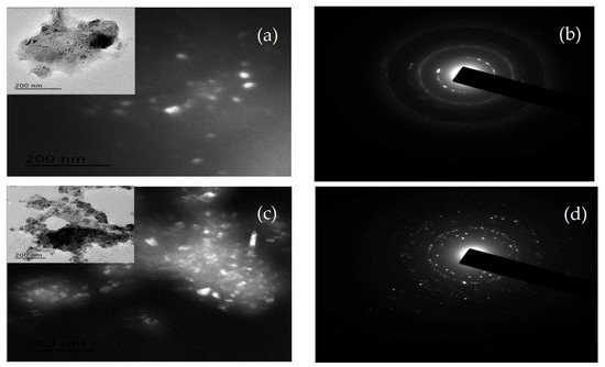 As observed in the TEM micrographs, DCU also presented a spherical morphology with dark spots and a high degree of agglomeration, given the presence of an outer coating layer (Figure 4c). Added to this, the colloidal nature of urea formaldehyde with its adhesive properties might increase the agglomeration of DCU [40]. In contrast, OU appeared separated with a smaller particle size and non-uniform shape as compared with the DCU (Figure 4a). Although urea is one of the few organic compounds that possesses a highly crystallographic structure, its high solubility decreased its crystalline appearance in the SAED micrographs (Figure 4b). In contrast, the SAED pattern of DCU (Figure 4d) showed spots and ring patterns in a random orientation, illustrating the crystalline nature of the existing compounds: phosphate-bearing minerals with various degrees of crystallinity [41], the original urea granules [42] UF [43], STS [44], and the potential formation of crystalline thiourea following the reaction between urea and sodium thiosulfate [45].
