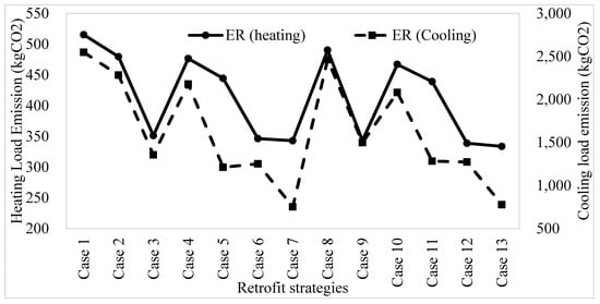 where and denote GHG emission associated with energy use in reference and retrofitted buildings.