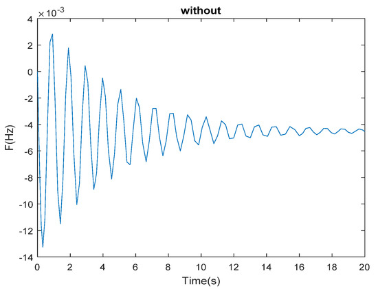 According to Figure 6, without considering the optimization algorithm and PID controller, the fluctuations in this scenario were very severe. Figure 7 shows the results when using PI control. In conventional power systems, secondary frequency control is often performed using classical PI controllers, which are usually set according to predetermined operating points. If the working conditions change, this structure will not provide the desired performance. It uses frequency deviations and perturbation inputs for tuning and is thus able to compensate for the inability of classical controllers to cover complex systems with uncertainties and perturbations. It can be seen that with PI control, it was more stable than the previous state, but the stabilization time in this control was longer.