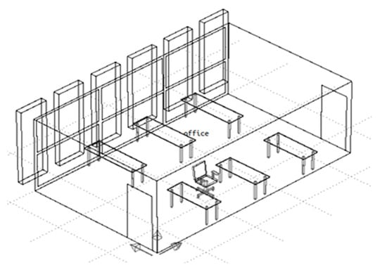 • Definition of a simulation model (geometry, materials, and schedules) of the office space.