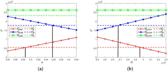 Corollary 1 indicates that when , the manufacturer investing in emission abatement technologies can not only enhance expected profits but also reduce carbon emissions, achieving a win-win situation for both economic and environmental performance. Hence, the manufacturer should implement an investment to improve the system’s performance.