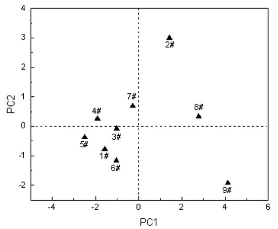 Principal component analysis (PCA) of PCBs in sediments from the Liaohe River Protected Area.